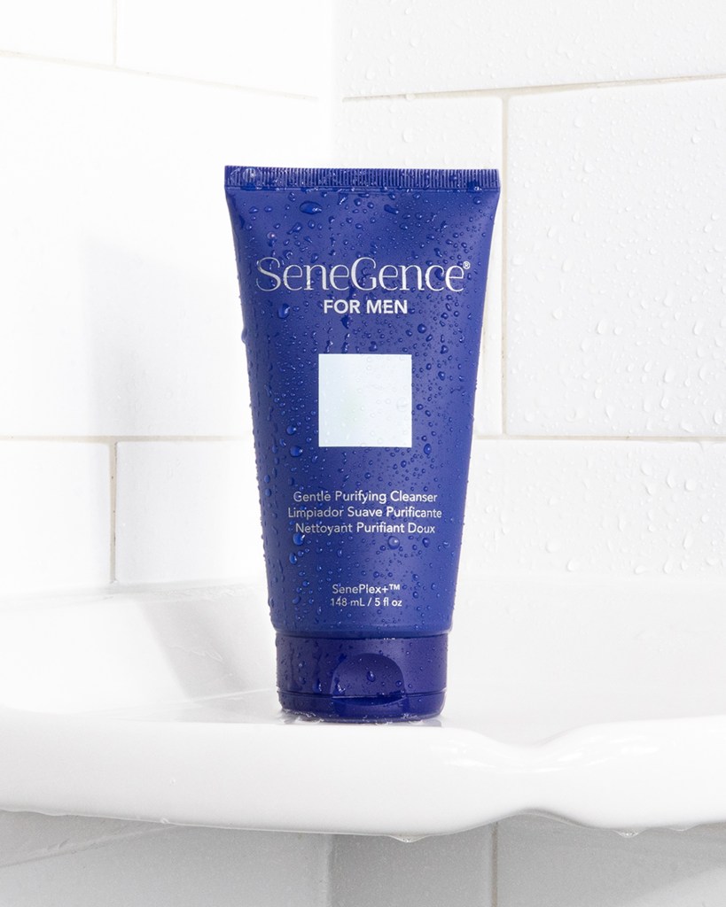 Gentle Purifying Cleanser with SenePlex+® is the foundation of the SeneGence for Men line. It gently exfoliates and hydrates skin while clearing away excess dirt and oil for a smooth, clear complexion. Key ingredients, such as apple extract, eucalyptus leaf oil, and algae extract, help calm and soothe the skin while increasing its radiance. For maximum results, use this product twice a day to help maintain soft, clean skin.