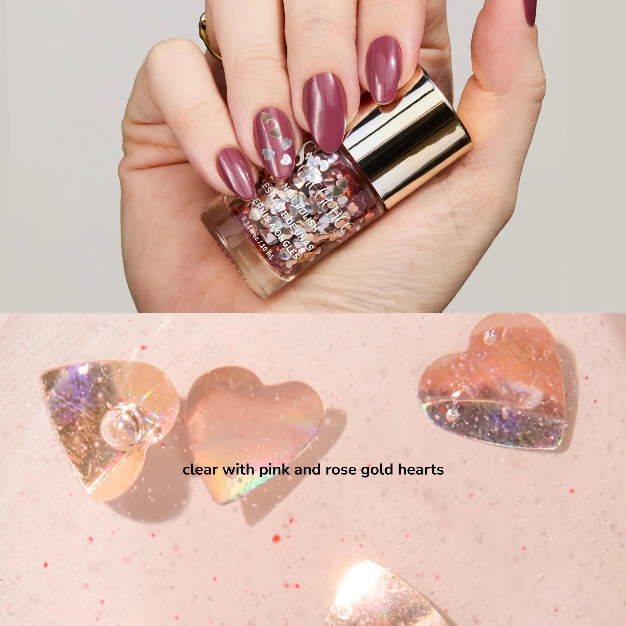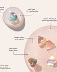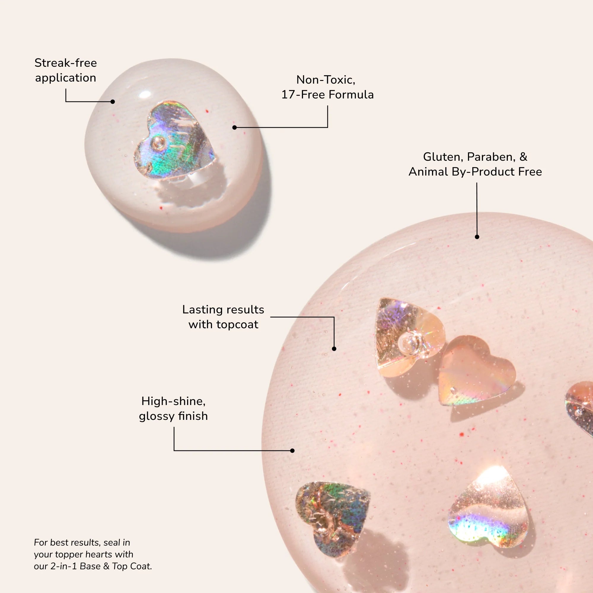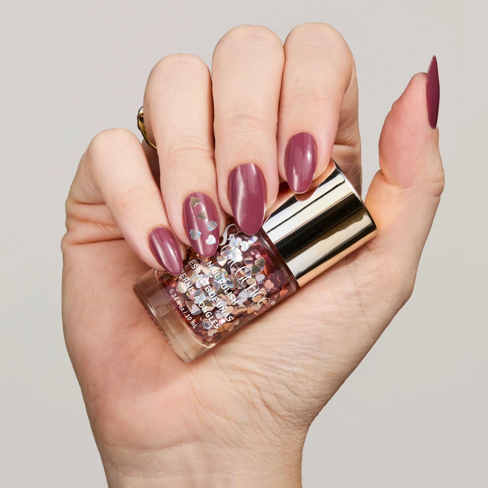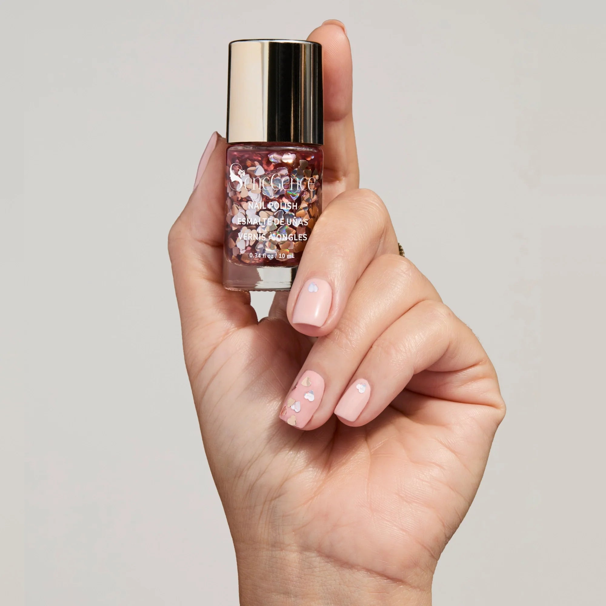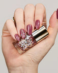 A naturally glam non-toxic 17-Free* nail polish in 5 high-shine colors and a 2-in-1 Base & Topcoat for mani-pedi perfection - leaving nails looking party-ready.
