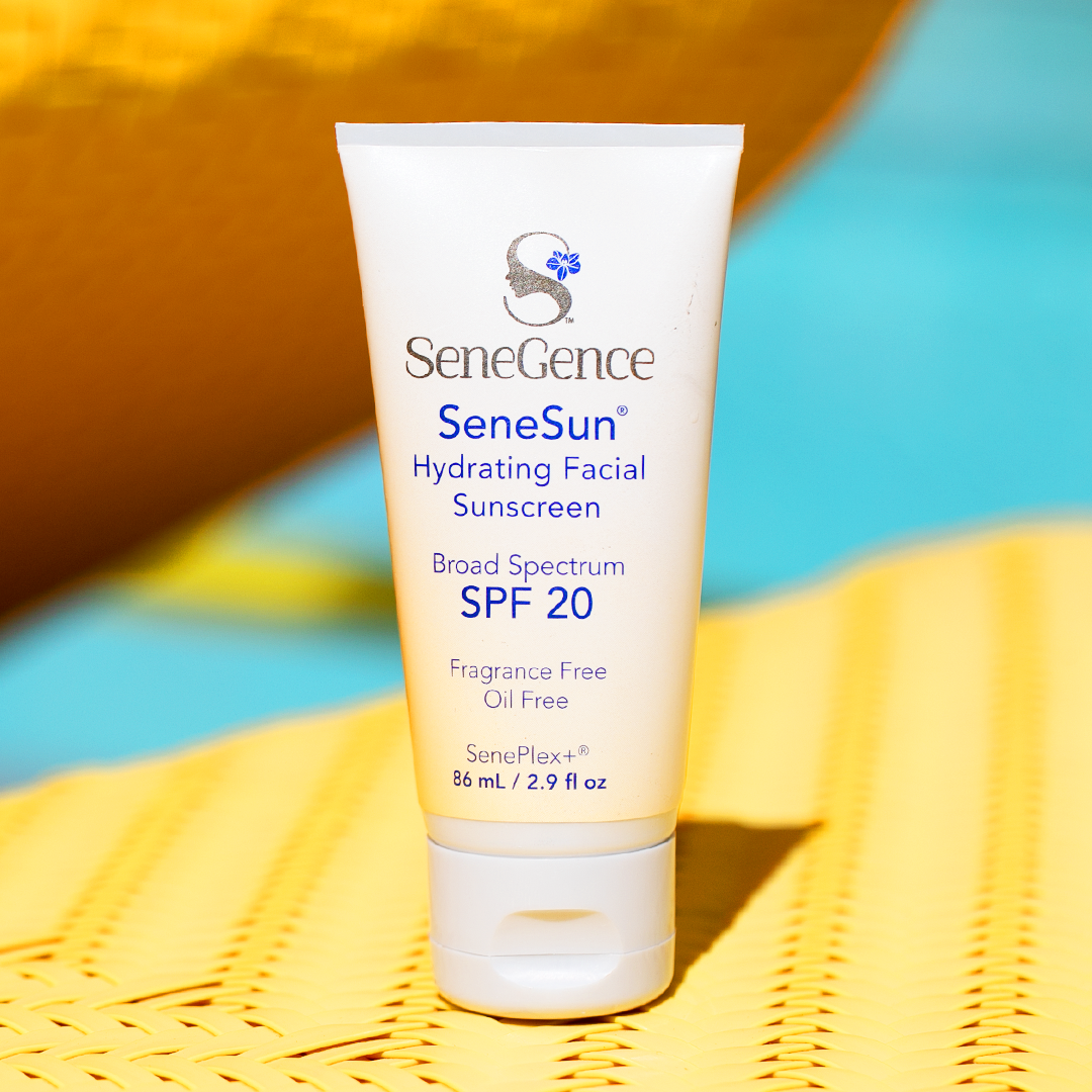 You’re going to want to add a little protection into your a.m. regimen. With warmer temps approaching, you’ll probably be having some fun in the sun. And, with an estimated 90% of skin aging caused by the sun (skincancer.org), SPF is a must-have. Select a broad spectrum formula that won’t leave behind a white cast, such as SeneSun Hydrating Facial Sunscreen SPF 20.